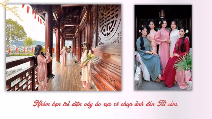 Phạm Thu Quỳnh (20) – sinh viên địa phương – chia sẻ: “Chúng mình quyết định chụp ảnh Tết sớm để có thời gian thoải mái, tránh đám đông vào những ngày cuối năm. Mỗi bức ảnh sẽ là kỷ niệm đẹp để đăng dần trong suốt dịp Tết.”