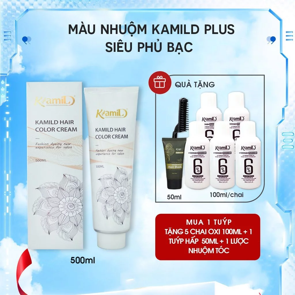 🔥 SIÊU PHỦ BẠC 100% – Màu nhuộm Kamild plus, thuốc nhuộm cho tóc bạc không dính da đầu 500ml ( kèm oxi) đang giảm giá!