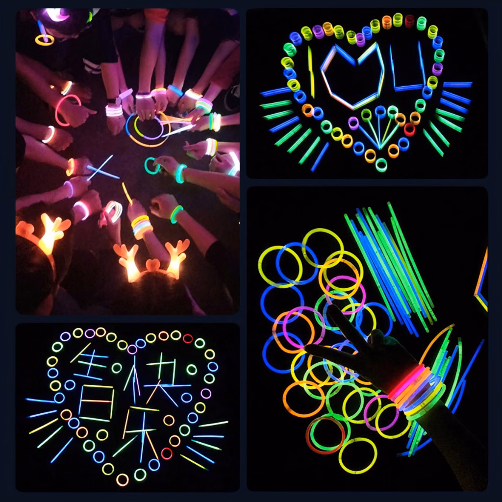 Sản phẩm có chứa 100 que phát sáng và 100 đầu nối, giúp bạn tạo ra nhiều kiểu dáng vòng tay dạ quang khác nhau. Que phát sáng có chất lượng cao, đảm bảo thời gian phát sáng lâu dài và ánh sáng ổn định.