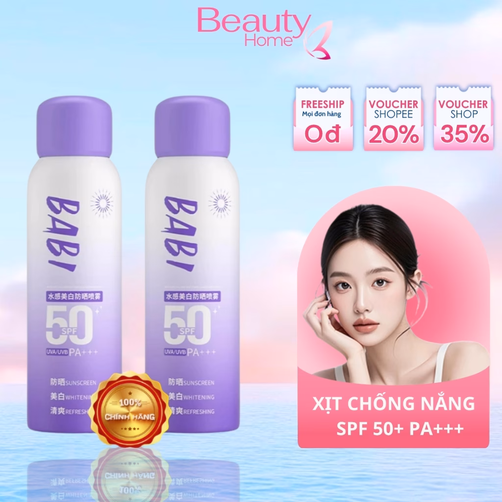 🔥 Xịt chống nắng BABI nâng tone kiềm dầu SPF50 PA+++ dùng cho da mặt và body – Chai 100ml đang giảm giá!